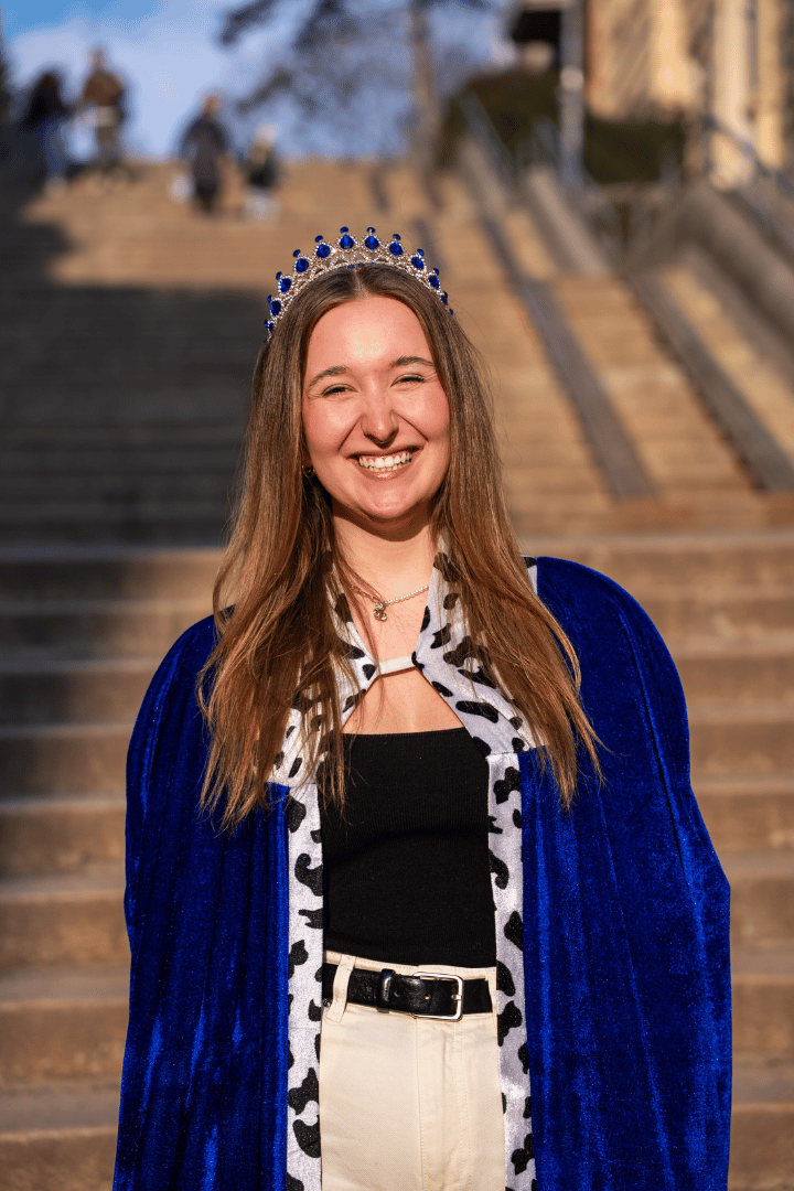 Královnou Majálesu bych chtěla být, protože Brno, majáles i MUNI si zaslouží reprezentaci královnou, která se nebojí být slyšet a vidět. A to se já rozhodně nebojím! Jako královna chci spojovat lidi, ať už studenty či nestudenty a ideálně i celé Brno. Ukázat lidem, že vysokoškolský život není jen o škole, ale hlavně o lidech se kterými trávíme čas, atmosféře a studentské energii. Tuhle příležitost beru jako zábavu i osobní výzvu - a těch se nesmíme bát, ale postavit se jim a zvládnout je nejlépe jak umíme. Kvůli tomu jsem do královny šla a těším se na vše co mi Majáles přinese!
